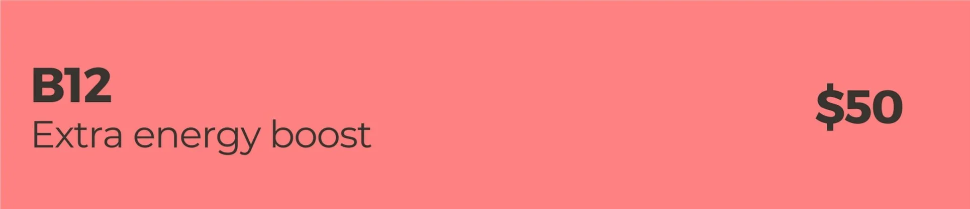 Burn fat and boost your metabolism. This drip harnesses the benefits of B vitamins to raise energy levels and support a healthy metabolism. Ideal for weight loss, enhancing athletic performance, energy production, and boosting your mood.